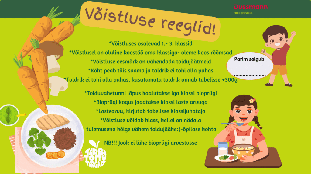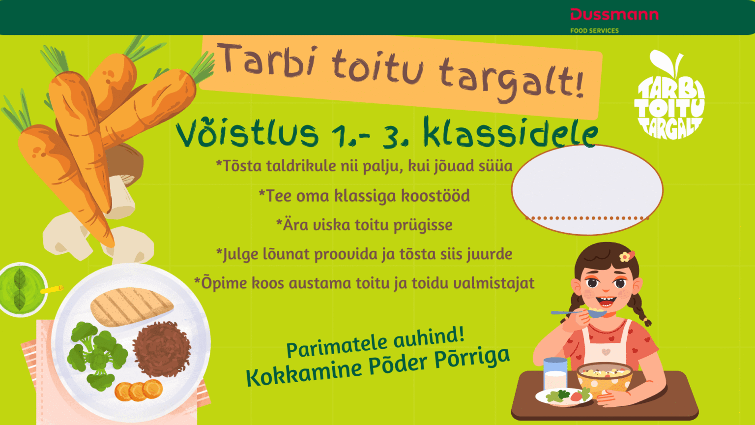 Projekt “Tarbi Toitu Targalt”. Projekt on mõeldud õpilastele vanuserühmas 1.-3. klass. Projekt toimub 20.04-24.04.2026.
